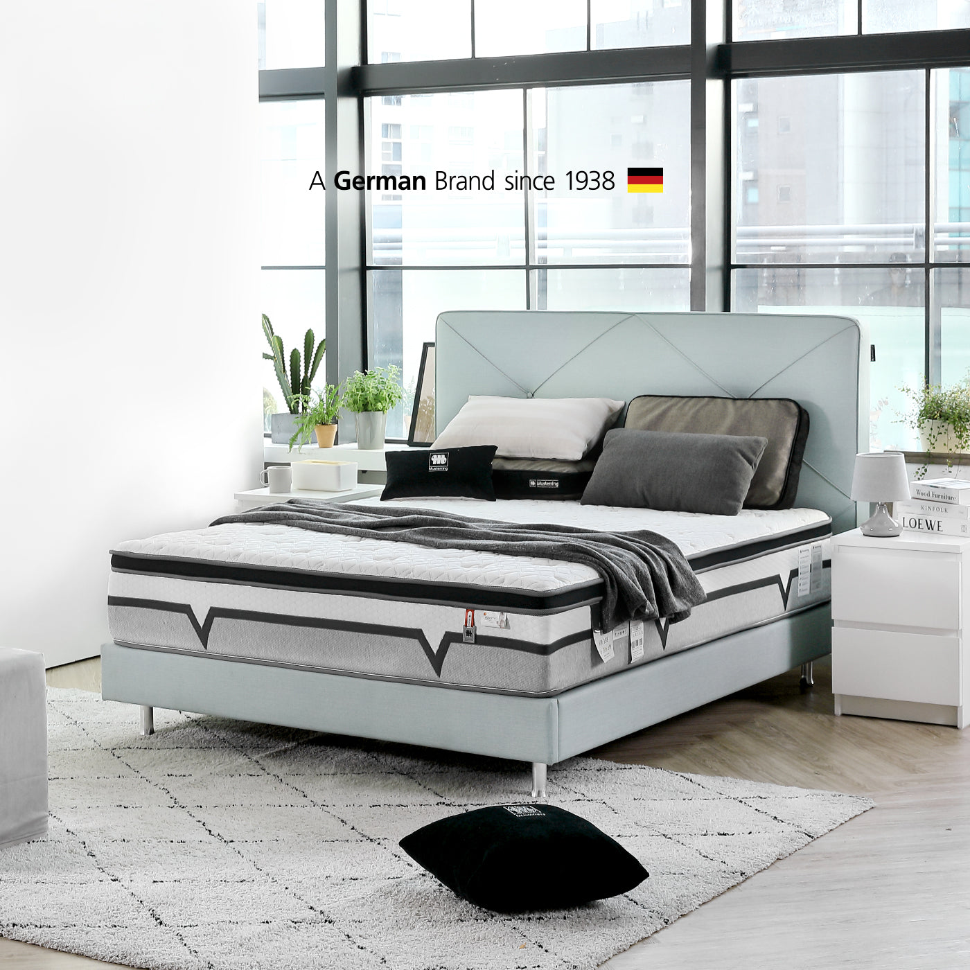 含碳量極高且精準無誤差,為業界鋼線之高品質指標,局部加強承托,以人體工學為基準,於頭、腰背、腿部分給予不同變化支撐,讓背部脊椎完全放鬆。