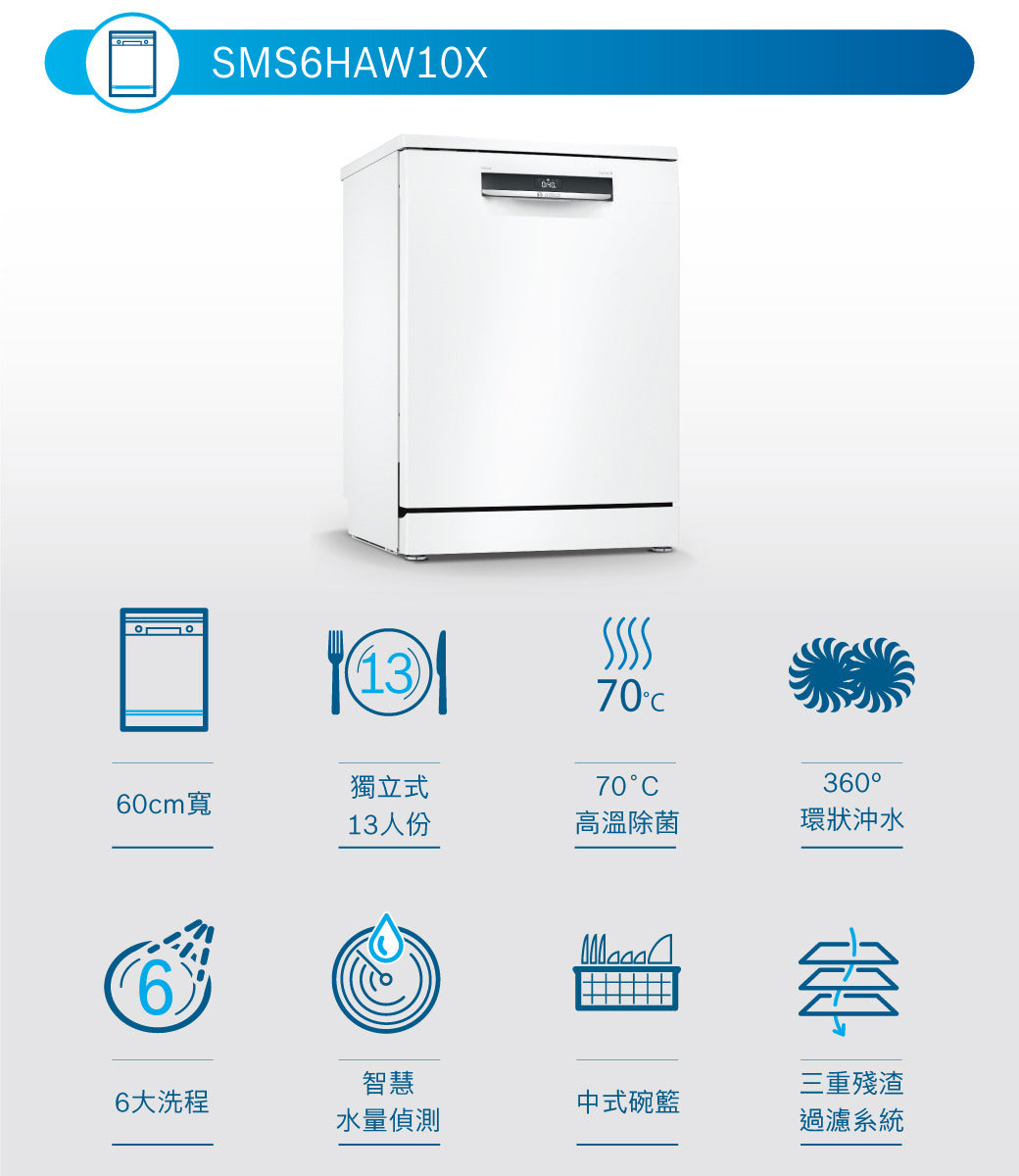 BOSCH博世 | SMS6HAW10X 洗碗機-6系列獨立式